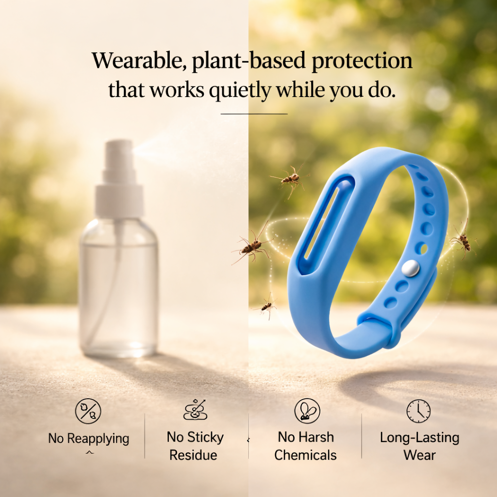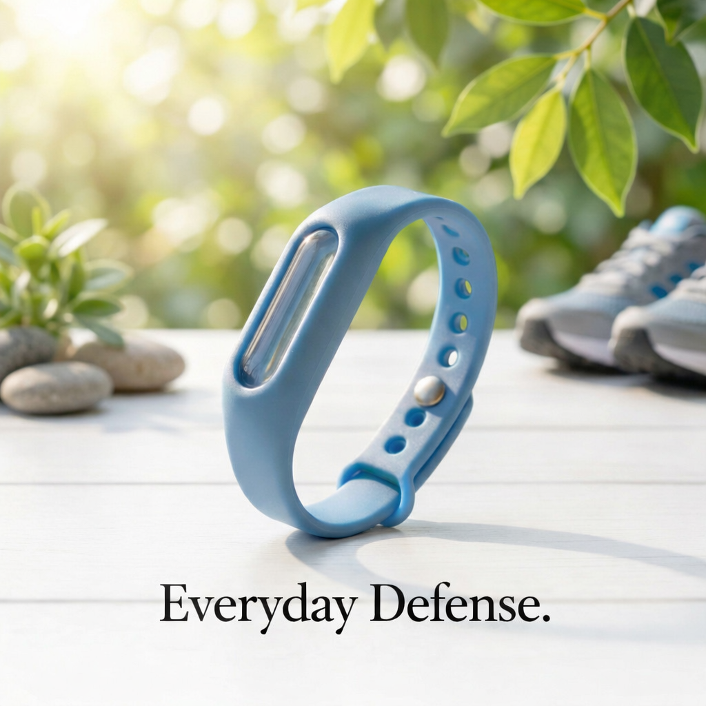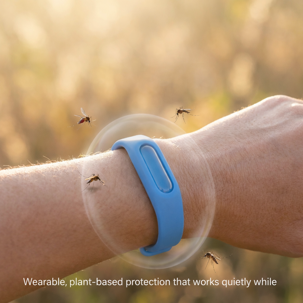 RepelGaurd is a lightweight, plant-infused wearable designed to stay on comfortably — helping reduce mosquito exposure without the mess or constant reapplication.