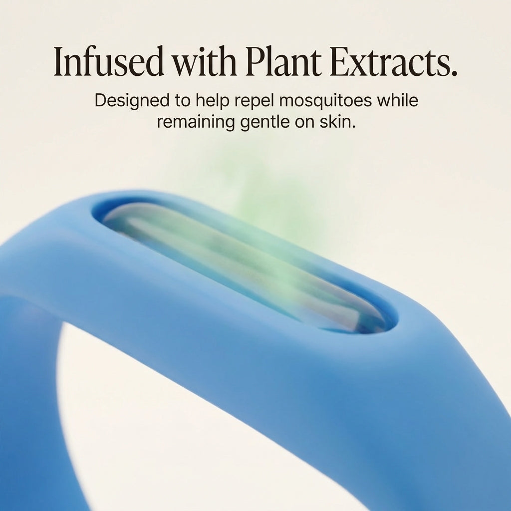 Plant-infused insert releases a subtle aroma while worn, helping reduce mosquito exposure.